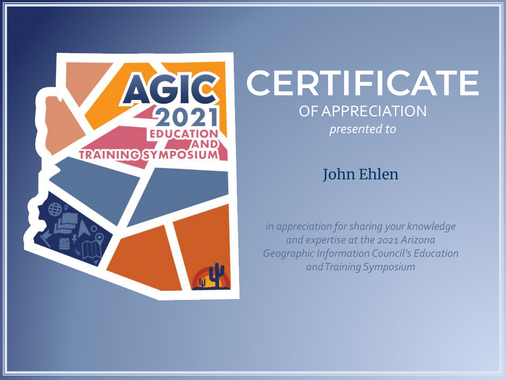 I had the pleasure of presenting alongside Sage Donaldson (ADOT) at the 2021 Arizona Geographic Information Council Symposium. The presentation, titled “Navigating Roads to Data Visualization”, took place on October 25th, 2021, and can be watched below.